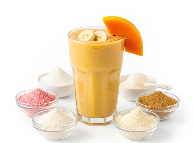 Digestão Otimizada: O mamão é rico em papaína, uma enzima digestiva natural que auxilia na quebra de proteínas. Isso pode facilitar a digestão e a absorção dos suplementos proteicos do suco (albumina, colágeno), tornando-o mais confortável para o sistema gastrointestinal.